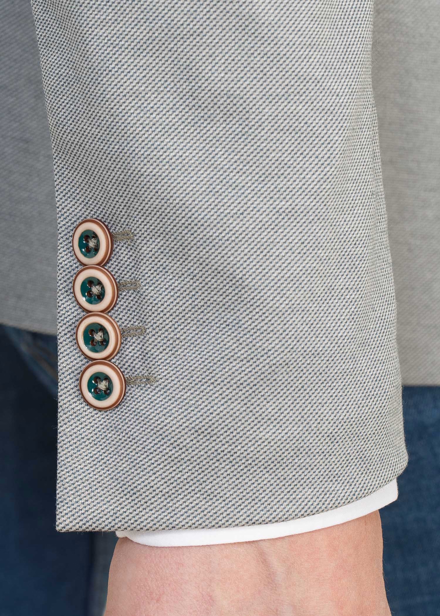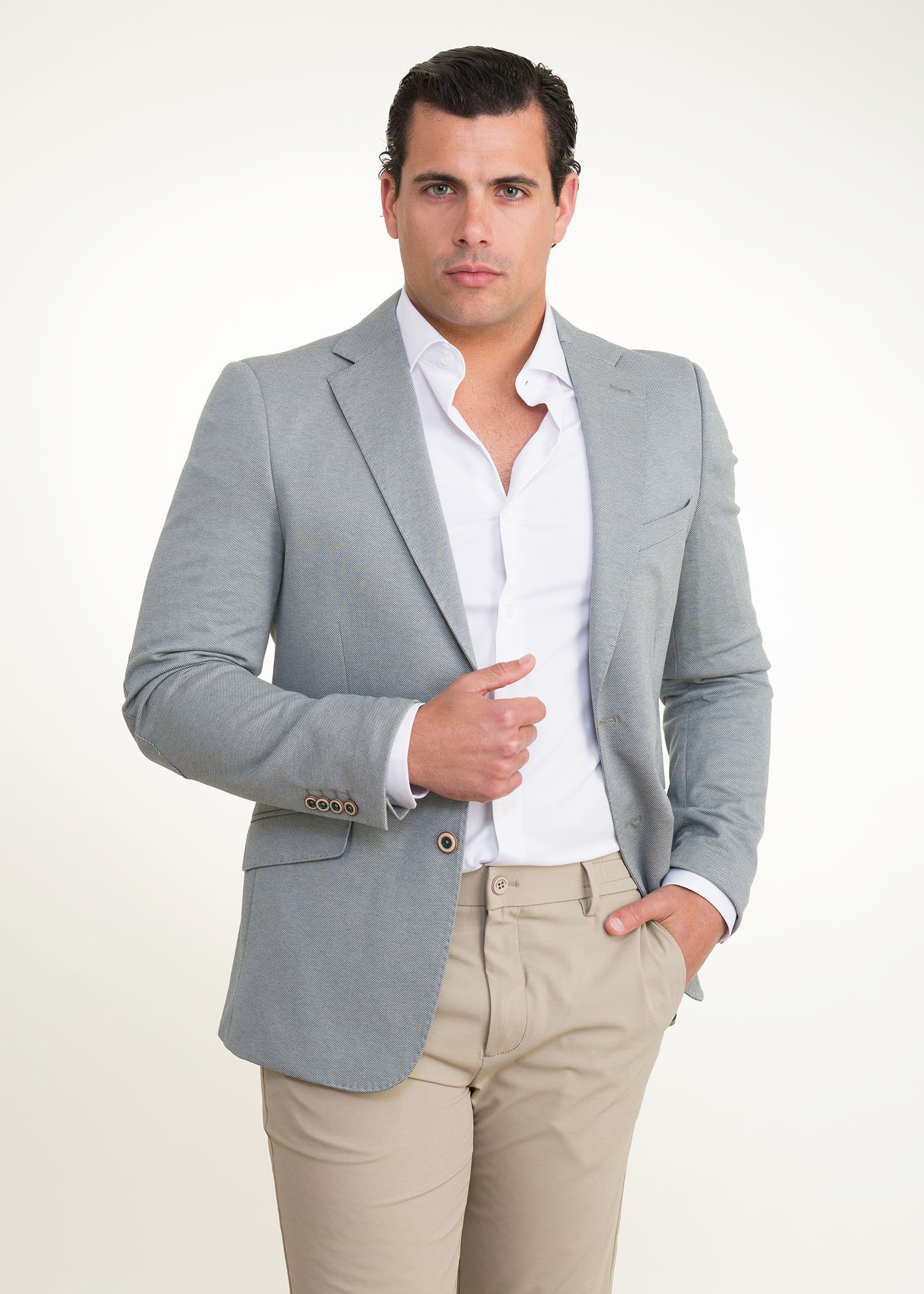Su diseño de corte entallado, solapa clásica y cierre de dos botones la convierte en una opción versátil: perfecta tanto para un estilo formal con camisa como para un outfit más desenfadado con camiseta. Los detalles en los puños y el acabado limpio refuerzan ese equilibrio entre modernidad y atemporalidad.