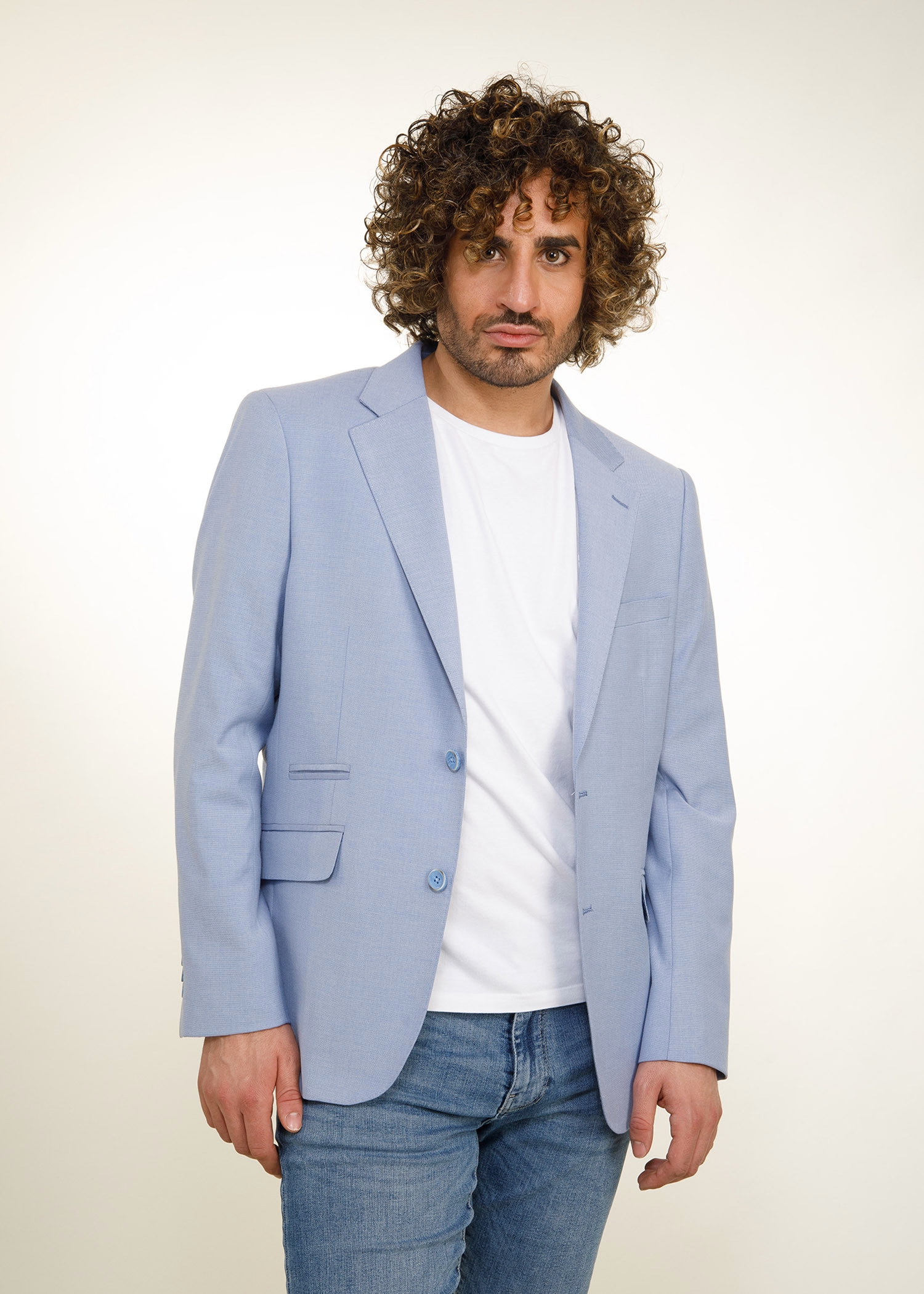 Elegancia relajada con un toque sofisticado. Esta americana en tono azul claro es la pieza clave para elevar cualquier look sin esfuerzo. Confeccionada en un tejido ligero y de acabado suave, ofrece una caída impecable que estiliza la silueta y aporta comodidad durante todo el día.