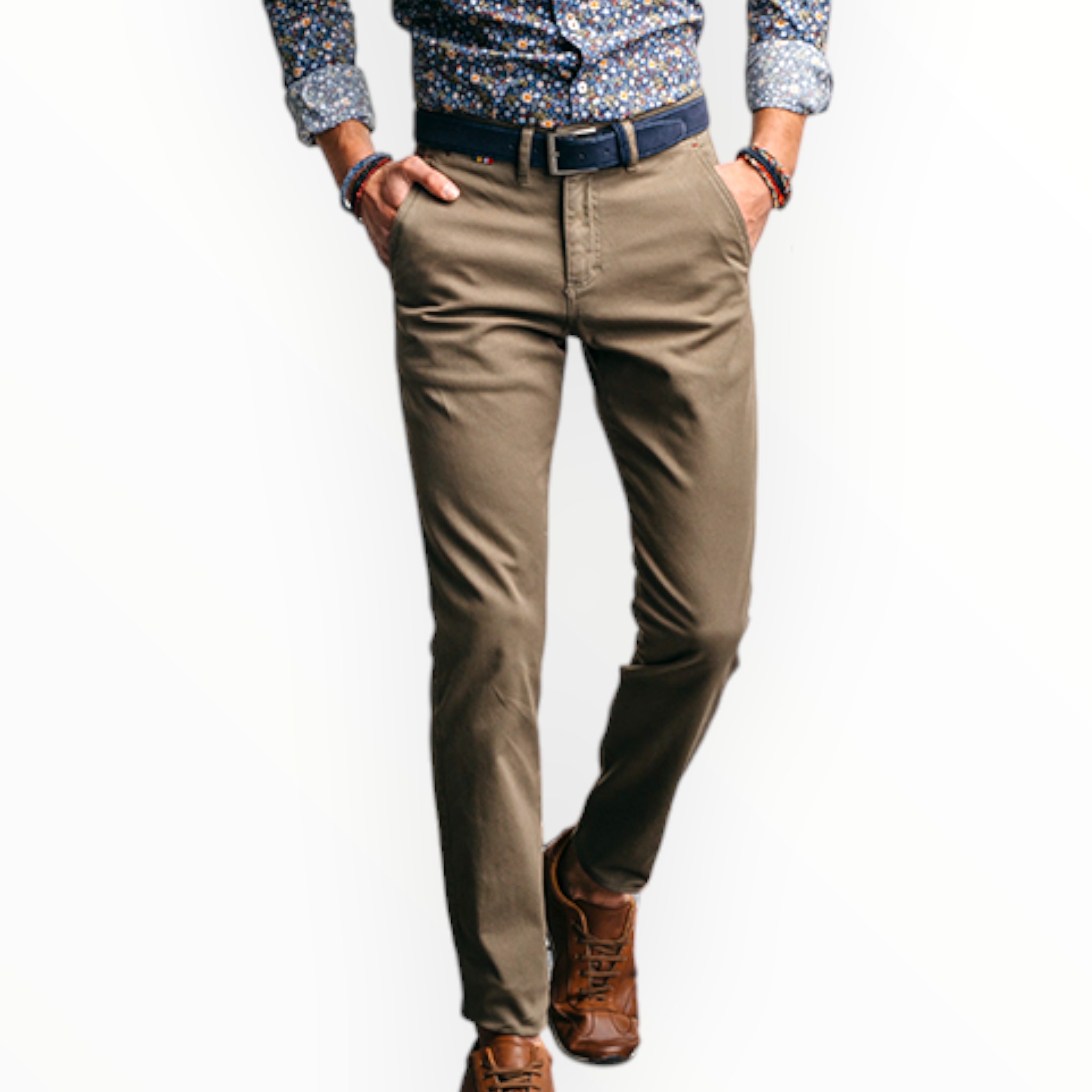 Con cuatro bolsillos y el tono perfecto camel, este chino se adapta a tu ritmo. Confort y estilo combinados para el hombre que sabe disfrutar de cada momento, sin complicaciones.
