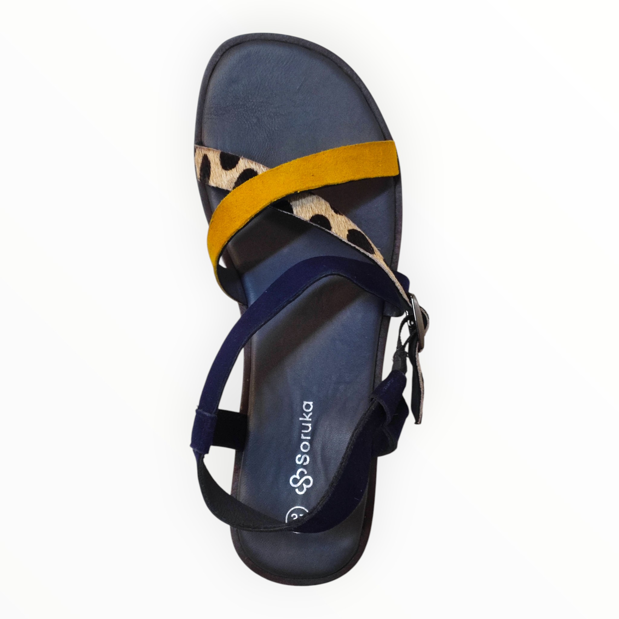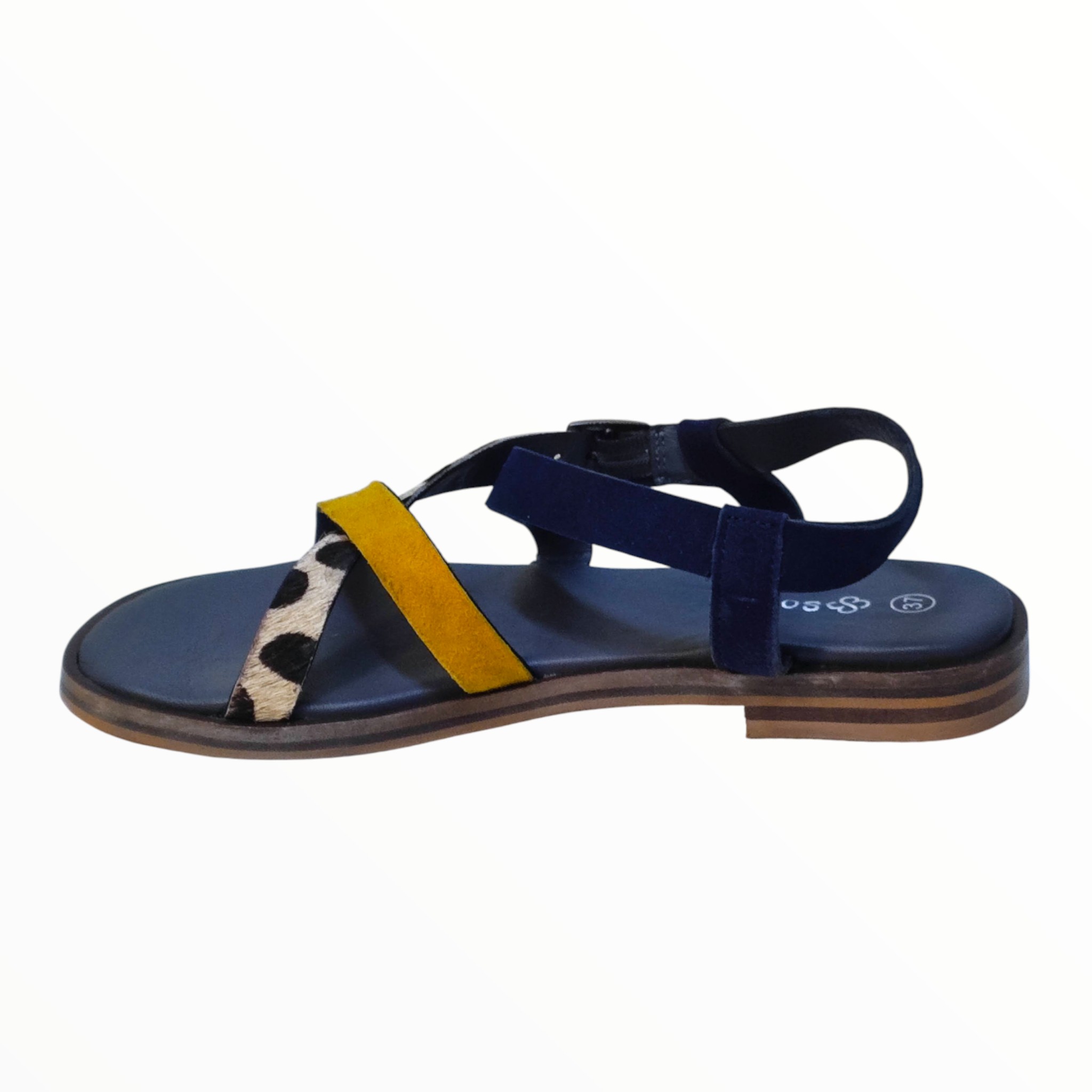 Sandalia de Piel de tiras en Amarillo y estampado Animal, suela de goma