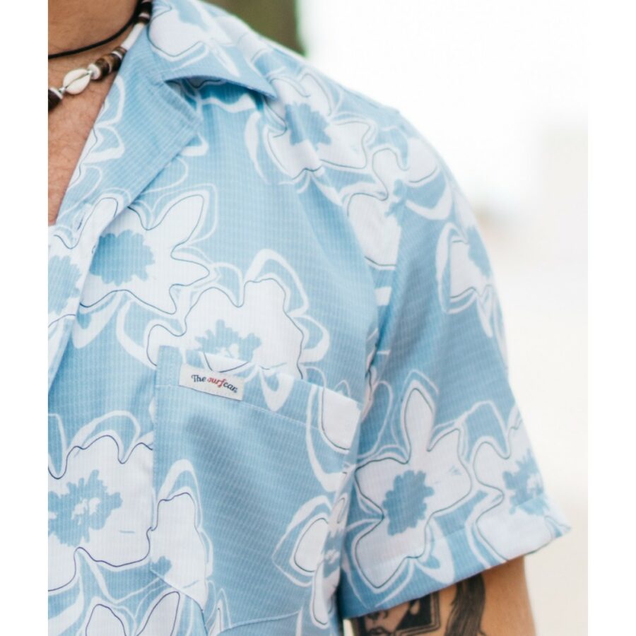 Camisa Bowling Flores celeste